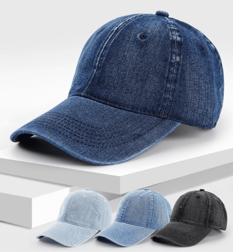 Washed denim baseball cap custom logo American retro soft top sun hat