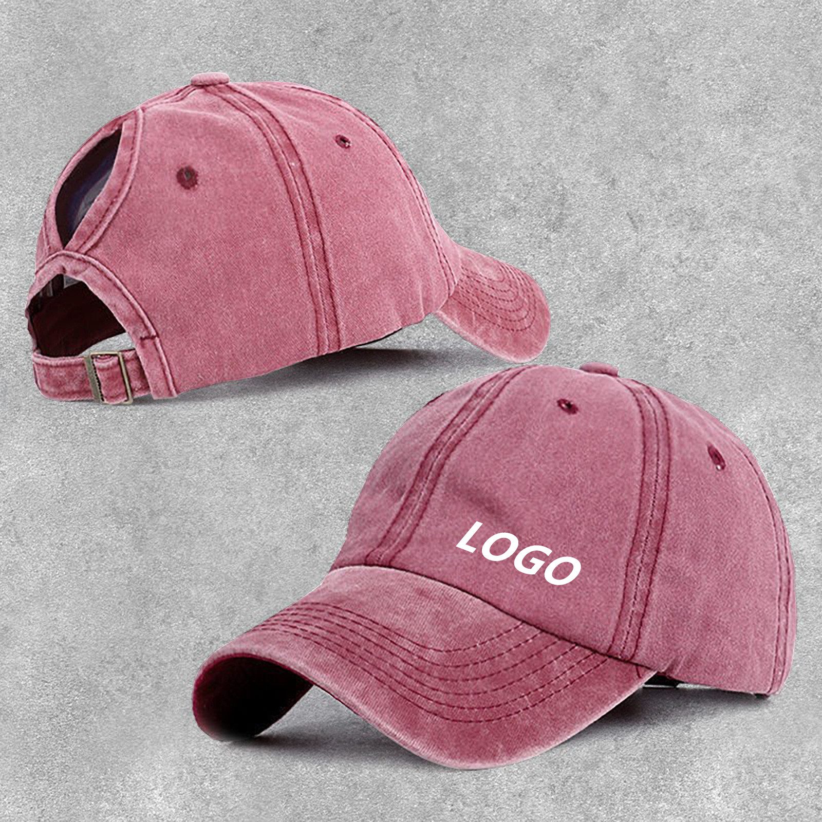 Vintage washed ponytail baseball cap custom logo
