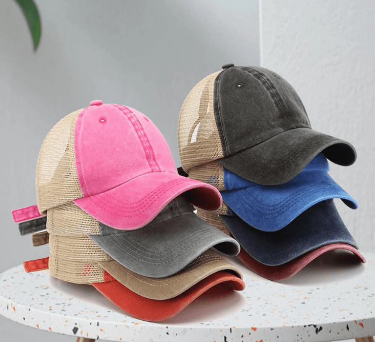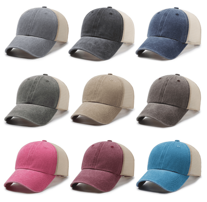 Washed cotton mesh hat embroidered logo retro truck driver hat
