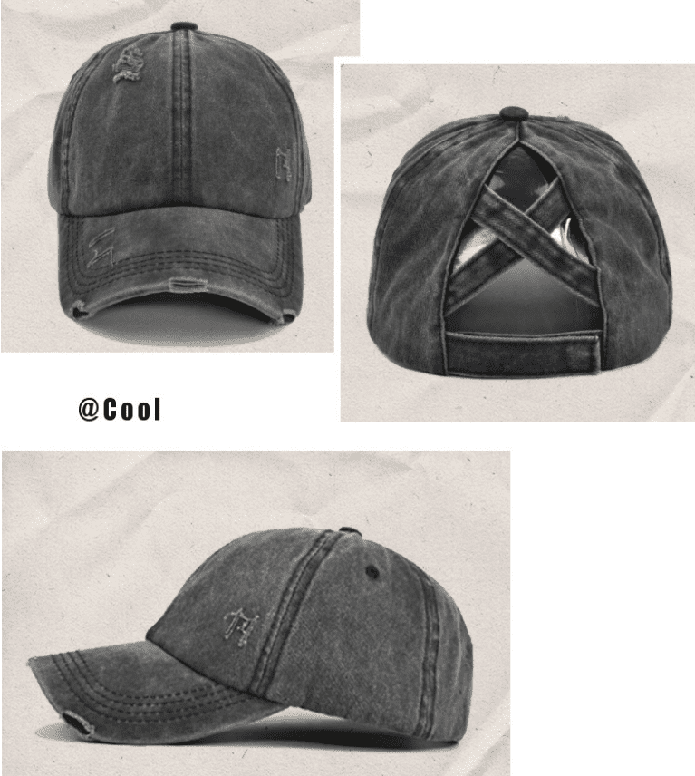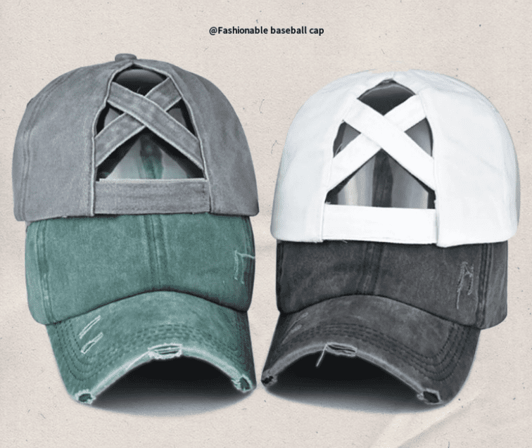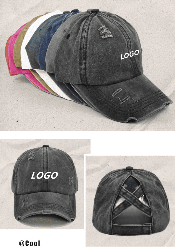 Washed cotton cross ponytail baseball cap custom logo made old hole duckbill cap