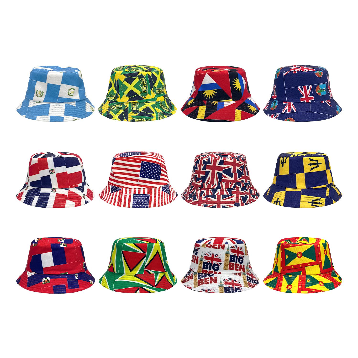 Customized printed fisherman hat for football and basketball matches, world flag basin hat